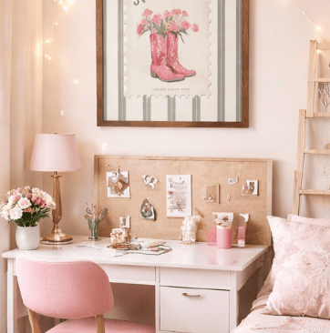 If you love combining western charm, pink aesthetics, and vintage-inspired décor, this floral cowboy boot artwork is the perfect finishing touch for your home.