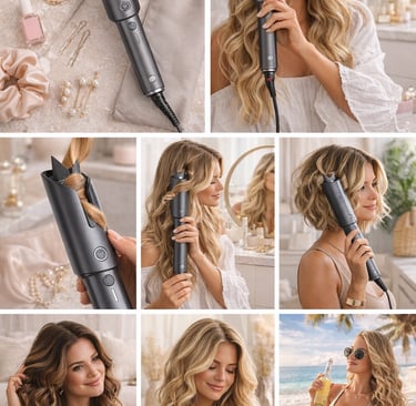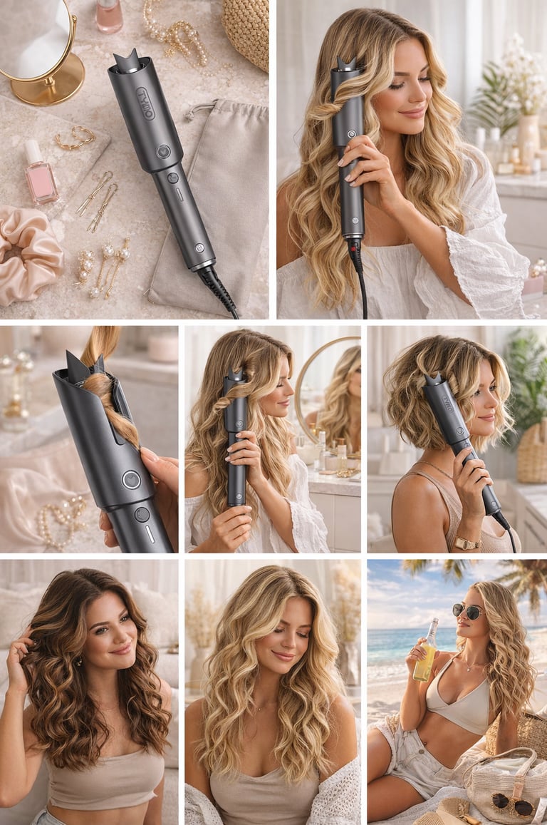 The TYMO CURLPRO is an automatic rotating curling iron that creates smooth, beachy waves with a single pass. Instead of manually twirling your hair around a barrel, this wand gently rotates and wraps your hair for you — meaning fewer mistakes and less time styling.