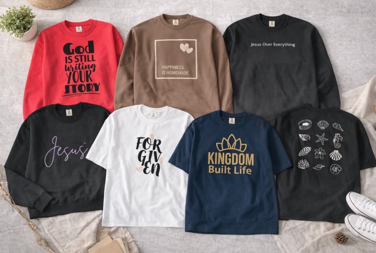 Our tees are designed with versatility and comfort in mind. You can dress them up with jeans and accessories or keep them casual for everyday wear. We focus on creating designs that feel relatable, encouraging, and timeless so you can wear them season after season.
