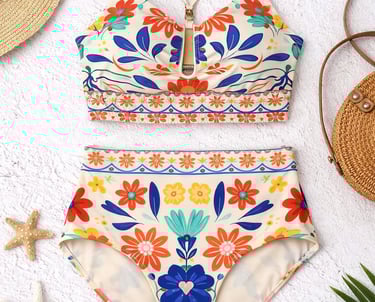 High-waisted bikinis continue to trend because they offer both style and comfort.