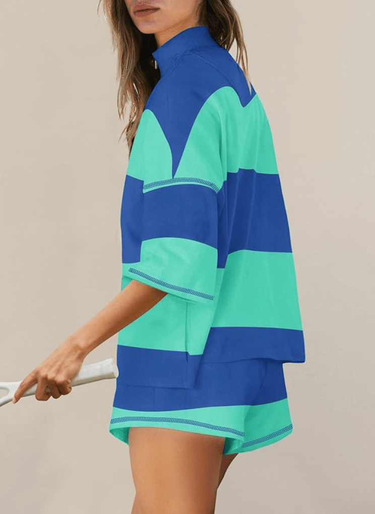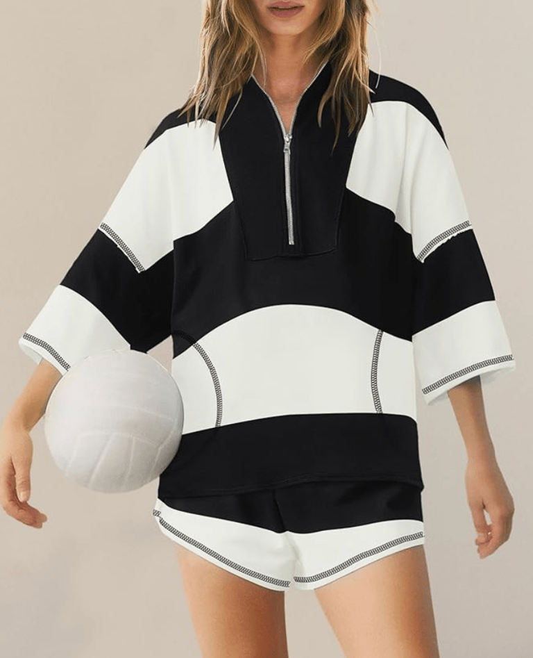 If you love women’s athletic clothing sets that are comfortable enough to lounge in but stylish enough to wear out, this striped two-piece workout set is absolutely worth adding to your closet.